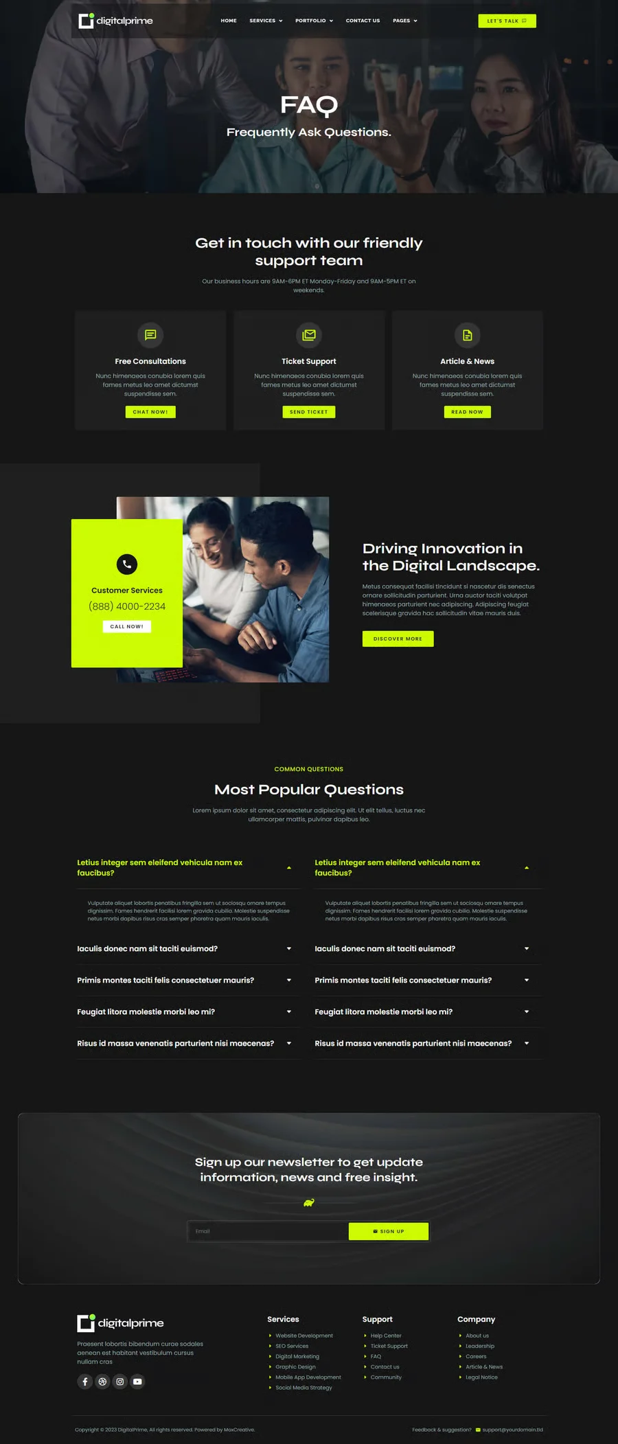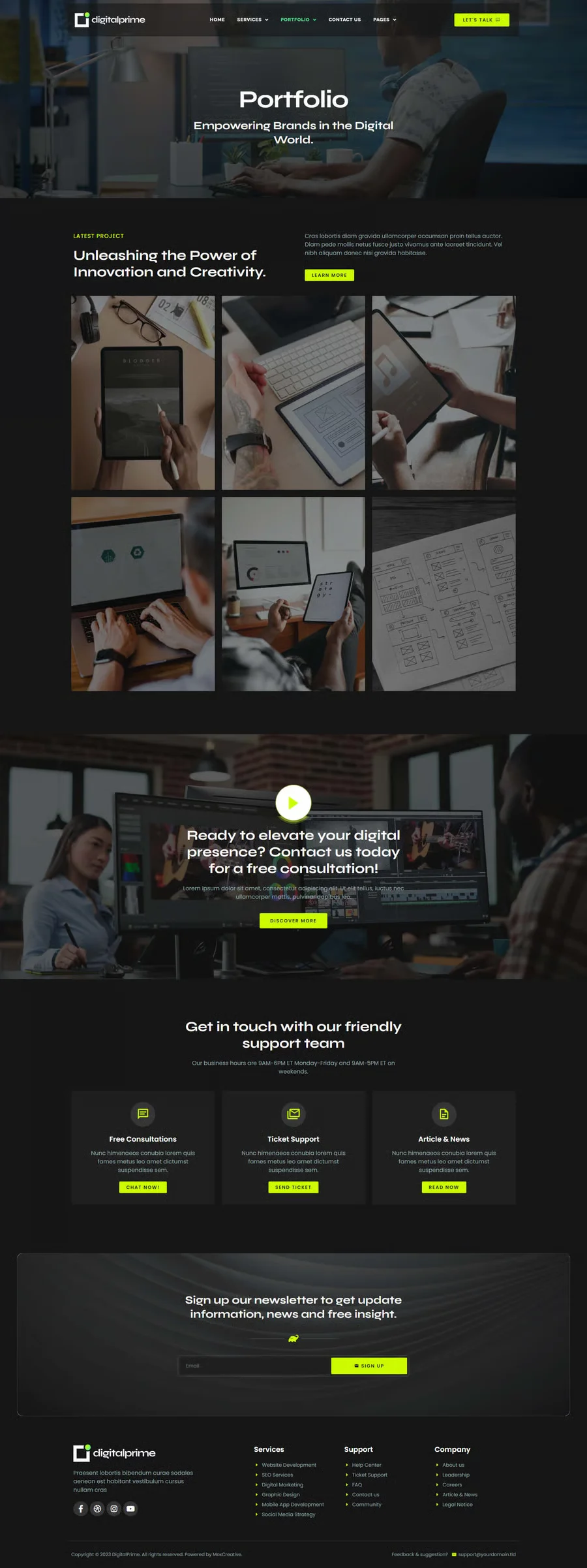 DigitalPrime es un diseño moderno y profesional ideal para agencias creativas. Funciona perfectamente para presentar servicios como diseño, marketing digital, desarrollo web, SEO, redes sociales, diseño gráfico y mucho más. Su estilo visual atractivo ayuda a destacar el valor de tu marca y conectar fácilmente con tus clientes.
