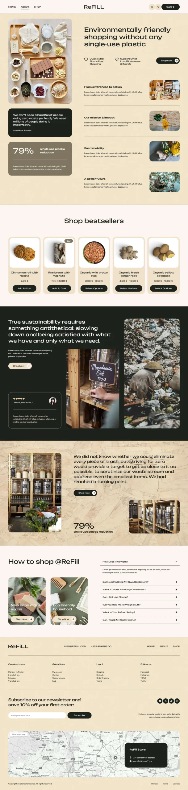 ReFill es un diseño pensado especialmente para negocios comprometidos con el cuidado del planeta. Perfecto para tiendas orgánicas, marcas veganas o proyectos sostenibles, te permite mostrar tus productos —como cosméticos naturales, artículos ecológicos o creaciones artesanales— de forma atractiva y cercana. Ideal para conectar con una audiencia que valora la autenticidad y el respeto por el medio ambiente.